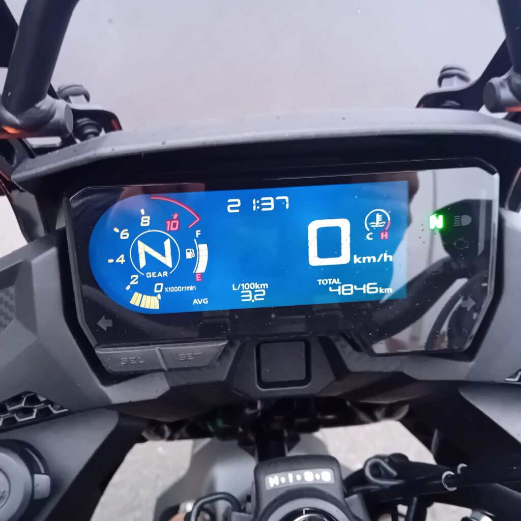 Utrustad med bland annat sänkta fotpinnar, slip-on, centralstöd, höjt styre och högre ruta