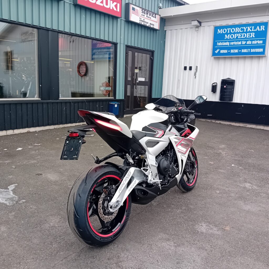 Dess stilrena design och högkvalitativa komponenter gör den till ett attraktivt val för sportiga förare som söker en motorcykel med både kraft och finess.