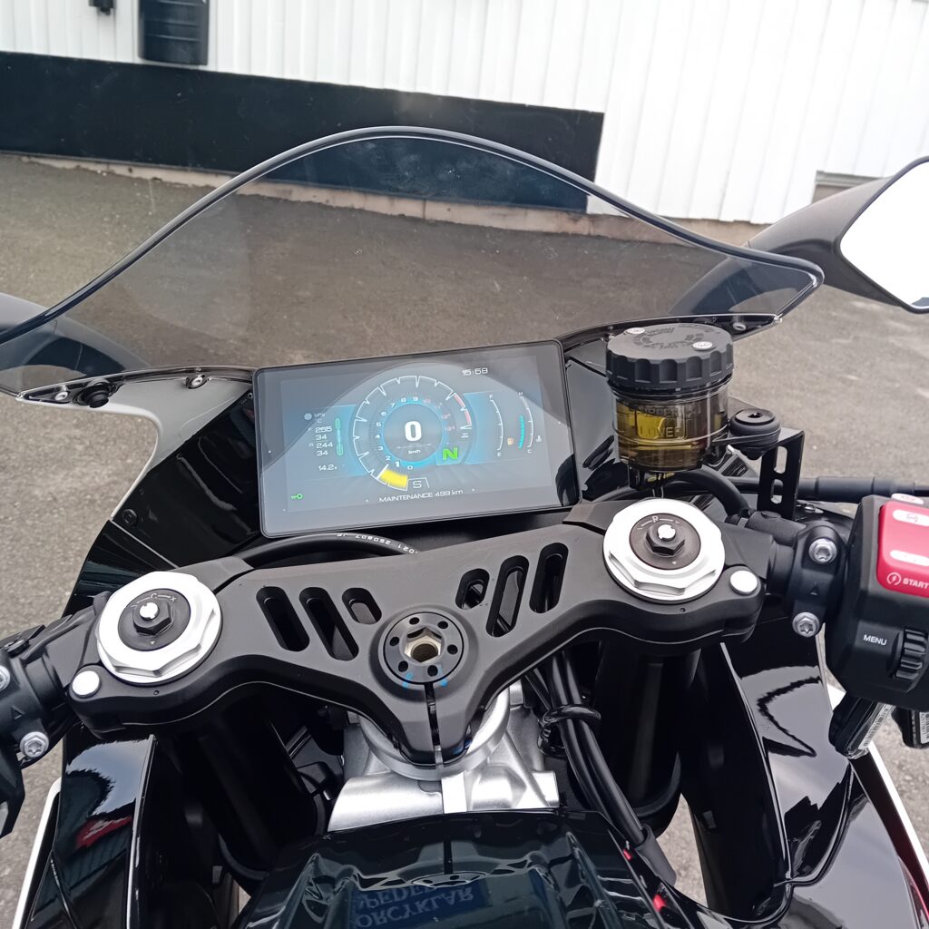 Med funktioner som quickshifter, traction control, 6,75-tums TFT-display och dubbla körlägen erbjuder den både prestanda och komfort.